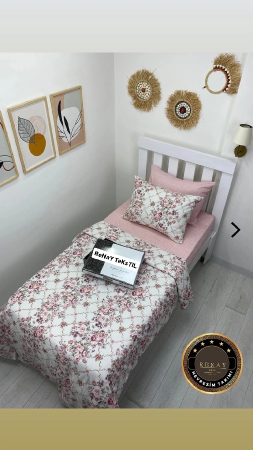 Tek Kişilik 1 adet nevresim (160 x 230 cm) 1 adet lastikli çarşaf (100 x 200 + 30 cm) 2 adet yastık kılıfı (50 x 70 cm) vardır. Özel kutusunda gönderilmektedir. Kumaş Dokuması 57 Tel Sıklığı %70-75 Pamuk  %25-30 Polyester Kolay Ütülenir Kumaş Yıkama Talimatı 30 Derecede, Hassas Programda, Ters Yüz Ederek Yıkayınız Sıvı Deterjan Kullanınız Zıt Renkler İle Birlikte Yıkamayınız