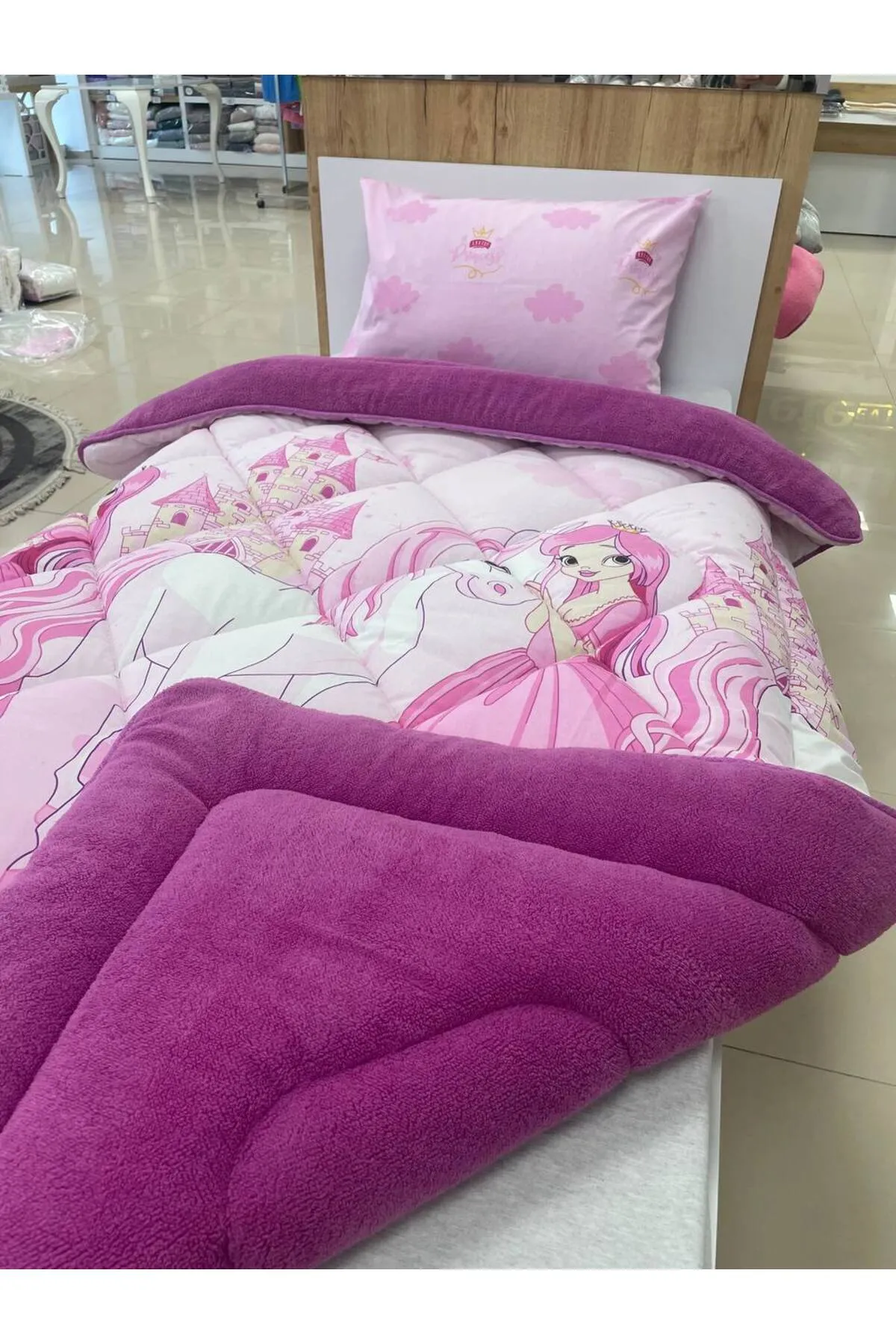 Mürdüm rengi, zarafeti ve şıklığı simgeleyen bir ton olup, yatak odanıza sofistike bir hava katacaktır. Prenses teması ile tasarlanan yastık kılıfı, hem çocuklara hem de yetişkinlere hitap eden şirin detaylarla zenginleştirilmiştir. Yatak odanızda farklılık yaratacak bu desenler, odanıza estetik bir görünüm katar.